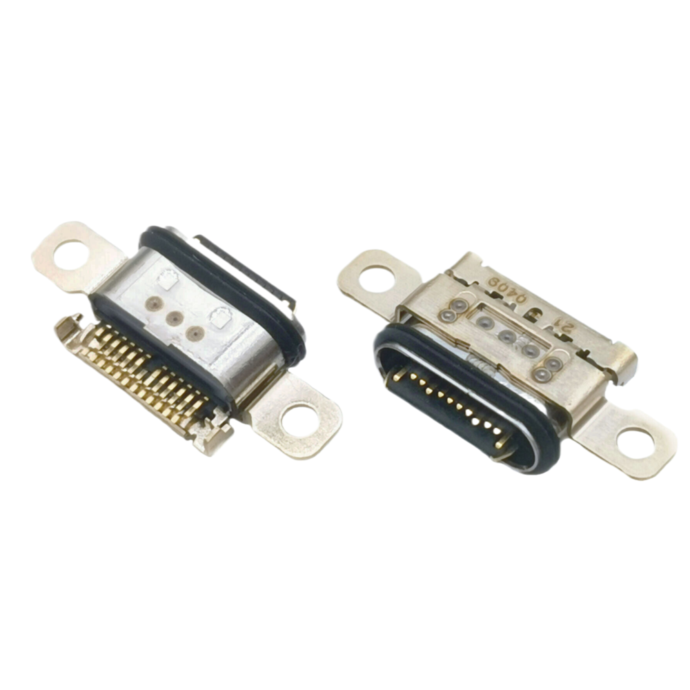 TYPE C 24P母座 板上雙貼SMT 舍片外漏 帶雙耳螺絲孔 CH=1.6MM L=7.55MM(華碩ROG2、3、5代游戲手機尾插)